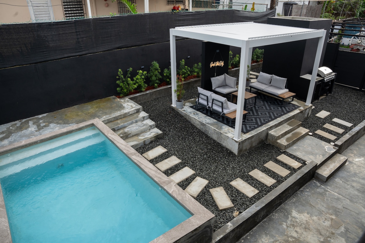 Modern home with private pool, perfect to spend a few days on vacation. It has 3 bedrooms, each with a queen size bed, tv, and A/C. A dedicated work space, a spacious living room and kitchen. You will have an outdoor dinning area and a gazebo to relax next to the pool. Your family will be close to everything when you stay at this centrally-located place. Less than 10 mins from the airport and 12 -15 from popular areas like Old San Juan, Condado and Isla Verde , Malls, outlets and Markets.