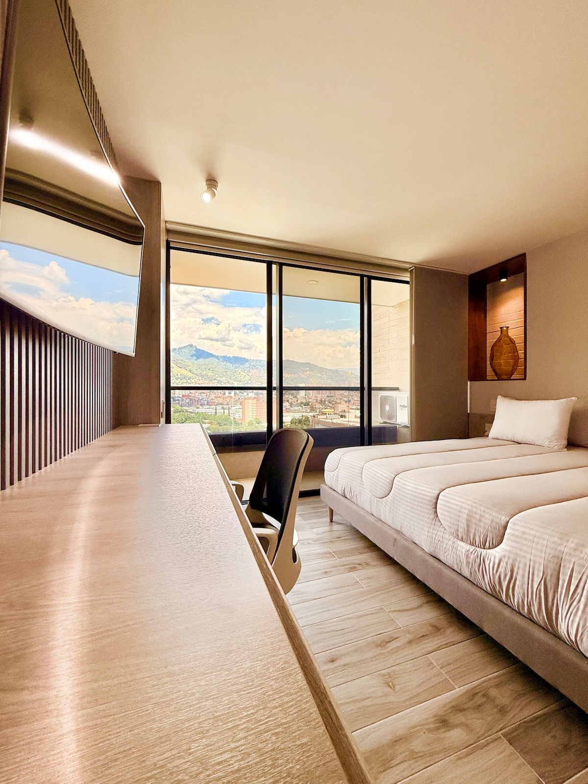 • Modern and comfortable fully furnished loft • Prime location within walking distance to Mayorca Shopping Mall, with plenty of restaurants, banks, a supermarket, gym, movie theater, bowling alley, and coffee shops • A/C throughout the apartment • Stunning city views • Fast Wi-Fi and a comfortable desk for remote work • Just a 15-minute Uber ride ($4 USD) to Provenza Street and Lleras Park, or 5 minutes ($2 USD) to Calle de la Buena Mesa Envigado. • 24-hour front desk security