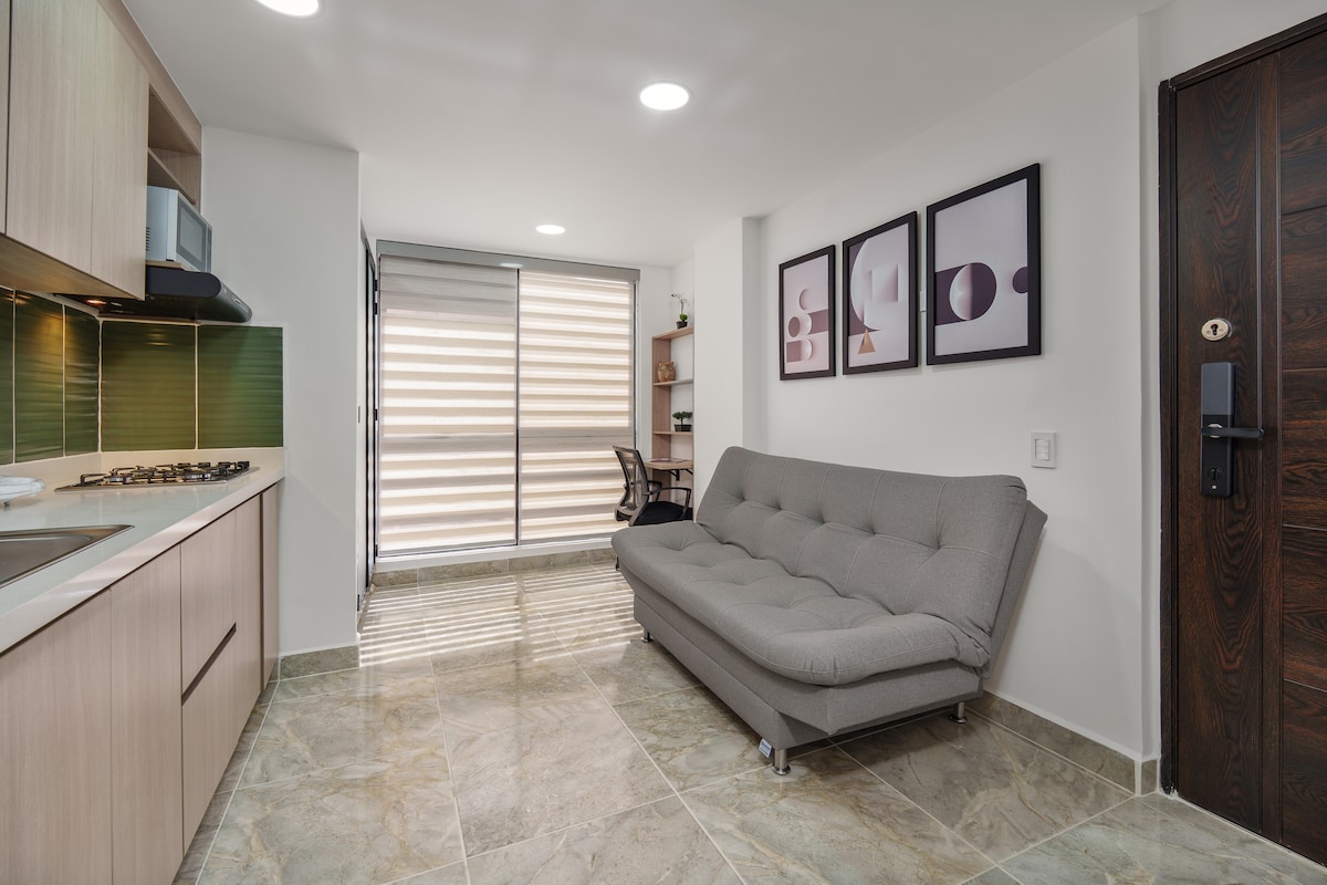 This cozy apartment on the 31st floor offers a bedroom, a sofa bed, a fully equipped kitchen, and a balcony with breathtaking views. It’s perfect for relaxing or exploring the area. About the Area: Located in Sabaneta, a vibrant neighborhood known for its charming parks, diverse dining options, and convenient access to shopping and public transportation. The apartment is currently located in a completely new building, so some common areas are not ready.
