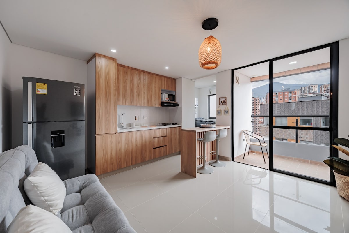 Apartamento moderno y acogedor, ubicado estratégicamente cerca de la estación del metro, vías principales y un amplia oferta comercial y gastronómica. Diseñado para brindar una experiencia cómoda y autentica, con una cuidada decoración artesanal que conecta al huésped con la riqueza cultural Colombiana. Ideal para estancias cortas o largas, con todos los servicios necesarios para una estadía confortable.