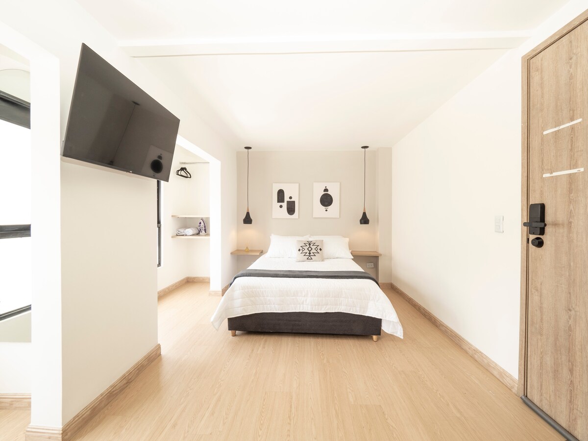 Sabaneta Vintage 702 combines modern comfort with traditional charm. It features two bedrooms with luxury double beds, a living area with a fully equipped kitchen, and TVs in every room. Its décor, showcasing old photos of the town, invites you to travel back in time while discovering those same places just a few blocks away—only two blocks from the main park. Perfect for experiencing the true essence of Sabaneta with full amenities and the best local routes (just ask us)!