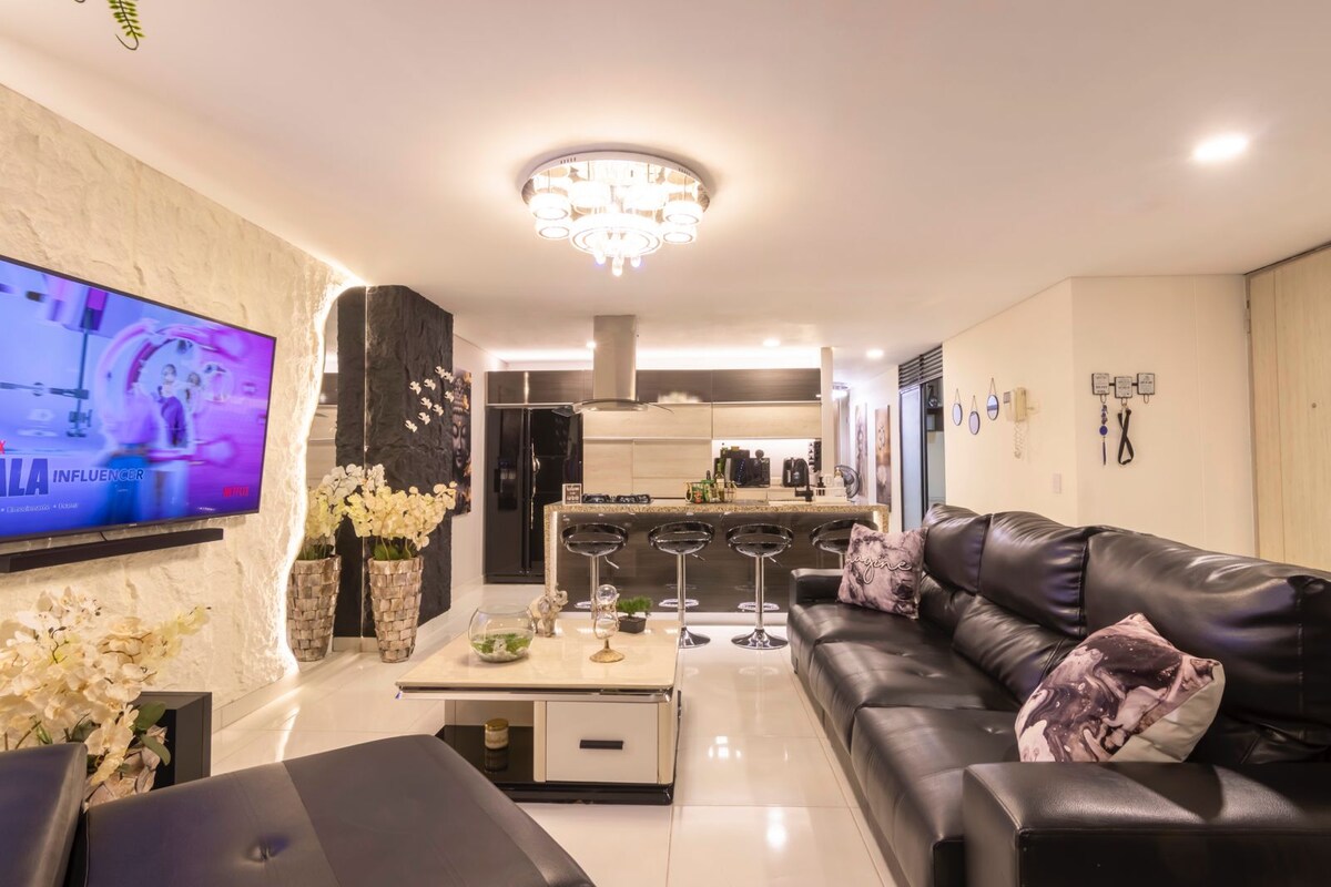 Hermoso apartamento nuevo y moderno, dotado con todo lo necesario para tu confort, acogedor, fresco e iluminado, excelente vista a las montañas y a la ciudad. Wifi de 500MB. Alta velocidad. Crea recuerdos inolvidables en este alojamiento único y especial. Situado en un edificio con diversas áreas comunes como gimnasio, piscinas, sauna, turco, juegos infantiles, sala de cine, salón de fiestas y parqueadero. Portería con vigilancia privada 24/7 Fácil acceso en transporte público.