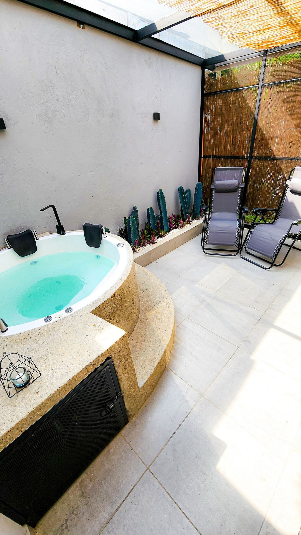 • Modern, private Suite in complex • Big private Hot Tub • Amazing location in heart of Poblado: "Oasis in the middle of the best part of the city, walking distance to everything” • 5 mins walk to best restaurants, cafes, malls. 22 mins walk to Poblado and Lleras Park • A/C • King Bed, Kitchenette • High speed 200 Mb WiFi • Loads of nature around • Transparent prices: No service or cleaning fee • On site 24/7 staff • Pool + Hot Tub in common areas, but you have your private Hot Tub in your suite