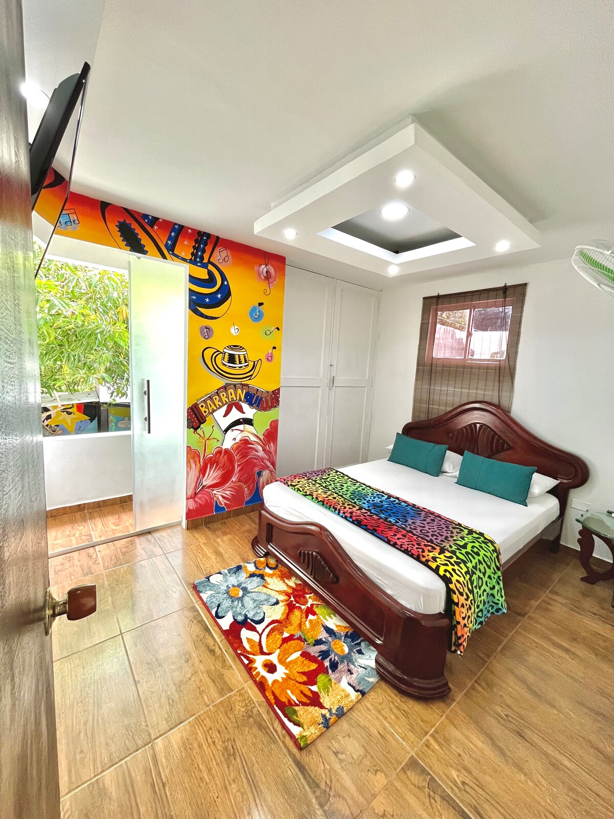 Habitación individual o doble con aire acondicionado, ventilador, baño interno y tv. Se encuentra en el norte centro histórico de la ciudad de Barranquilla, específicamente en el barrio Bellavista, a 5 min del Gran Malecón del Río, cerca a universidades, casa del carnaval y vías principales.