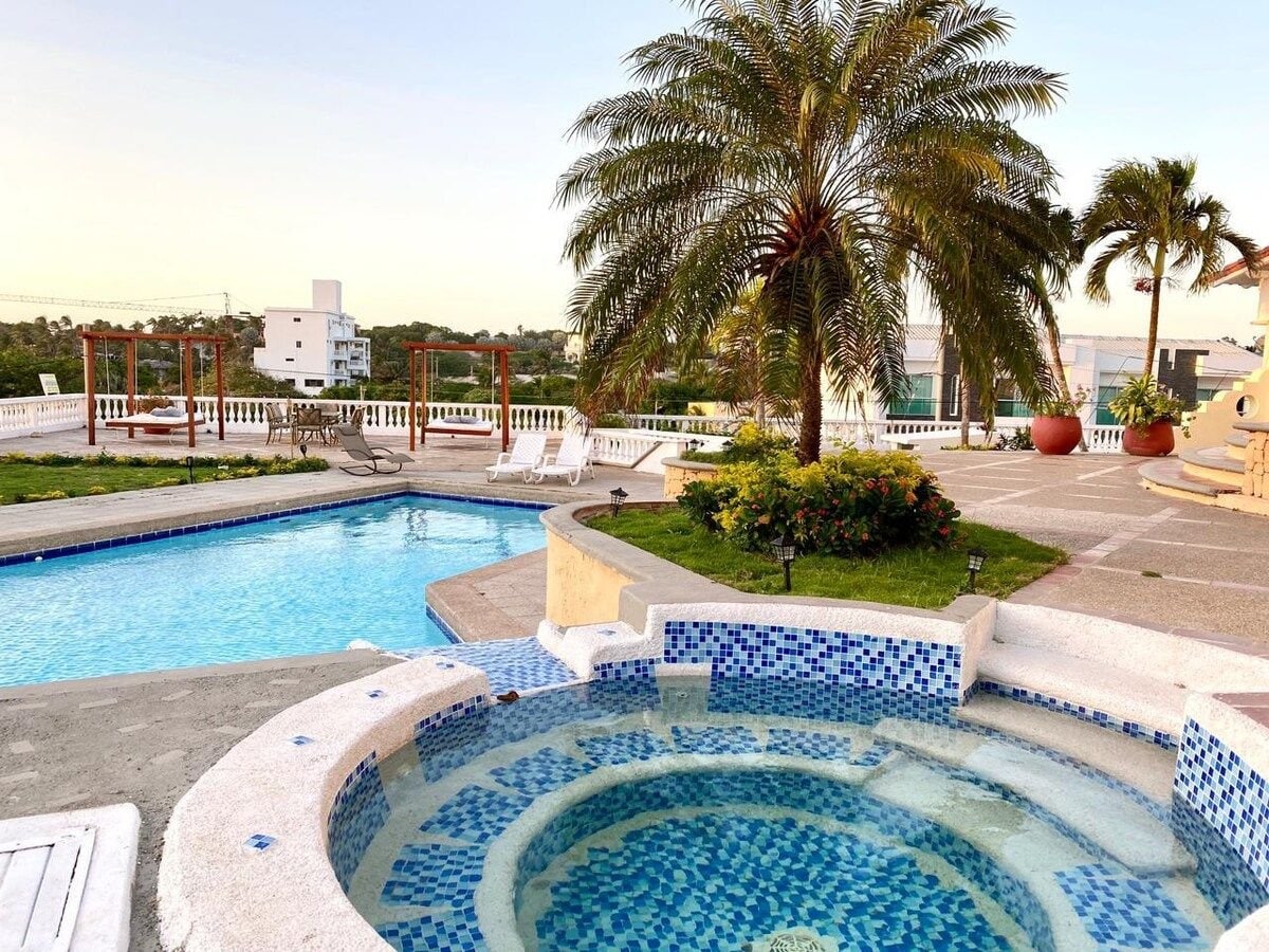 Cabana campestre a 20 minutos de Barranquilla. Primera linea de playa, deck privado en madera frente al mar. Mirador de 2 pisos frente al mar. Piscina, aire acondicionado, wifi de alta velocidad, escritorio para home office viendo al mar. En las playas de Sabanilla, playa sin casetas, tranquilidad total. Disponibles asador tradicional de carbon y tipo barril. Hamacas, camilla masajes, silas de playa, hamacas acuaticas de piscina.