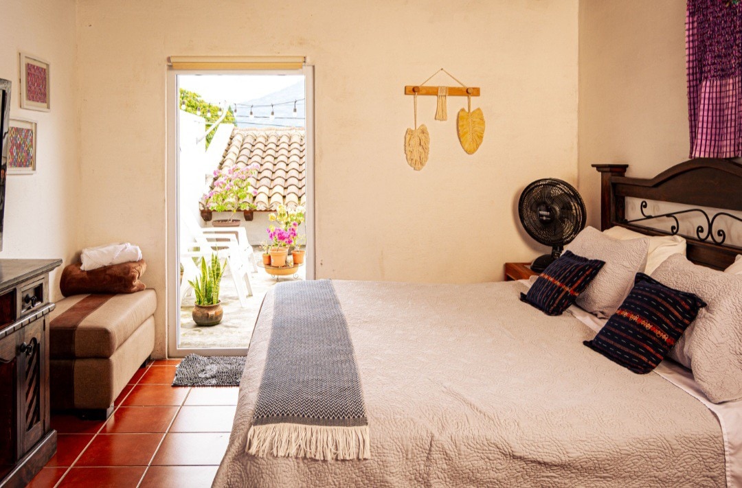 Our property has a total of 10 wonderful boho-style accommodations, walking distance to all major places of interest in Antigua Guatemala. The setting will bring a cozy and relaxing vibe with all the amenities for a pleasant stay. The space provides plenty of outdoor lounge areas to choose from. We offer several bed distribution options, from 2 double or Queen size beds to 1 king size bed. Multiple accommodations can be booked together. Please ask for availability