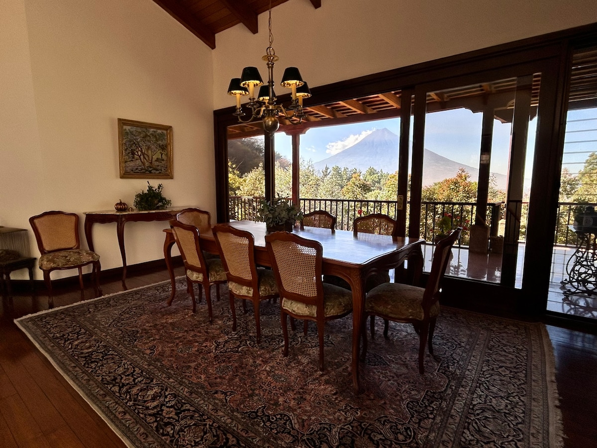 Villa Montes de María: Colonial Elegance with Volcano Views Escape to Villa Montes de María, a modern colonial villa nestled in the mountains of Antigua. Just 5 minutes from the city center, it offers tranquility and convenience. With 4 bedrooms, it sleeps 9 comfortably. Enjoy panoramic volcano views, a peaceful setting next to Finca Filadelfia, and easy access to Antigua's attractions. ** FOR EVENTS ask for quote ** PRICE is different ** STARLING HIGH SPEED INTERNET ** DAILY CLEANING SERVICE