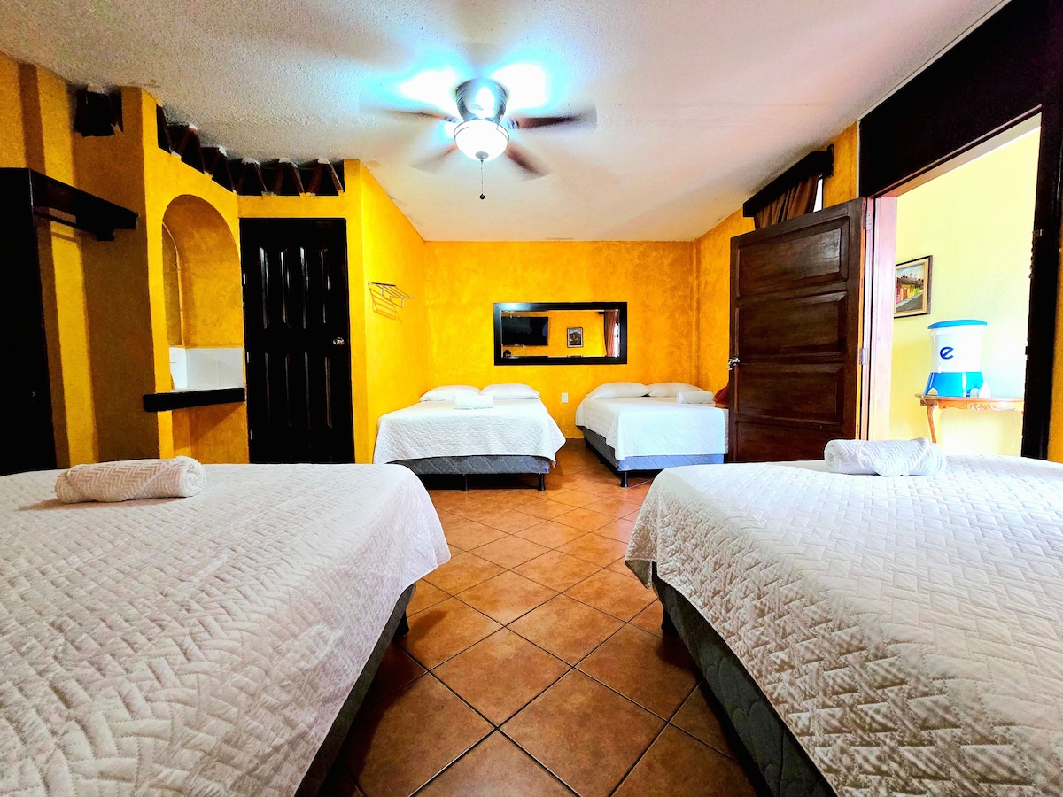 Spacious and comfortable room at El Carmen Hotel located in the center of the city just 1.5 blocks from the central park The room has 2 double beds, a private bathroom, cable TV, hot water, air conditioning, toiletries, and access to our rooftop with spectacular views of Antigua. Free breakfast and parking are included. *BECAUSE THIS IS A HOTEL ROOM YOU WILL BE ASSIGNED ANY OF THE DIFFERENT ROOMS IN THE PICTURES*