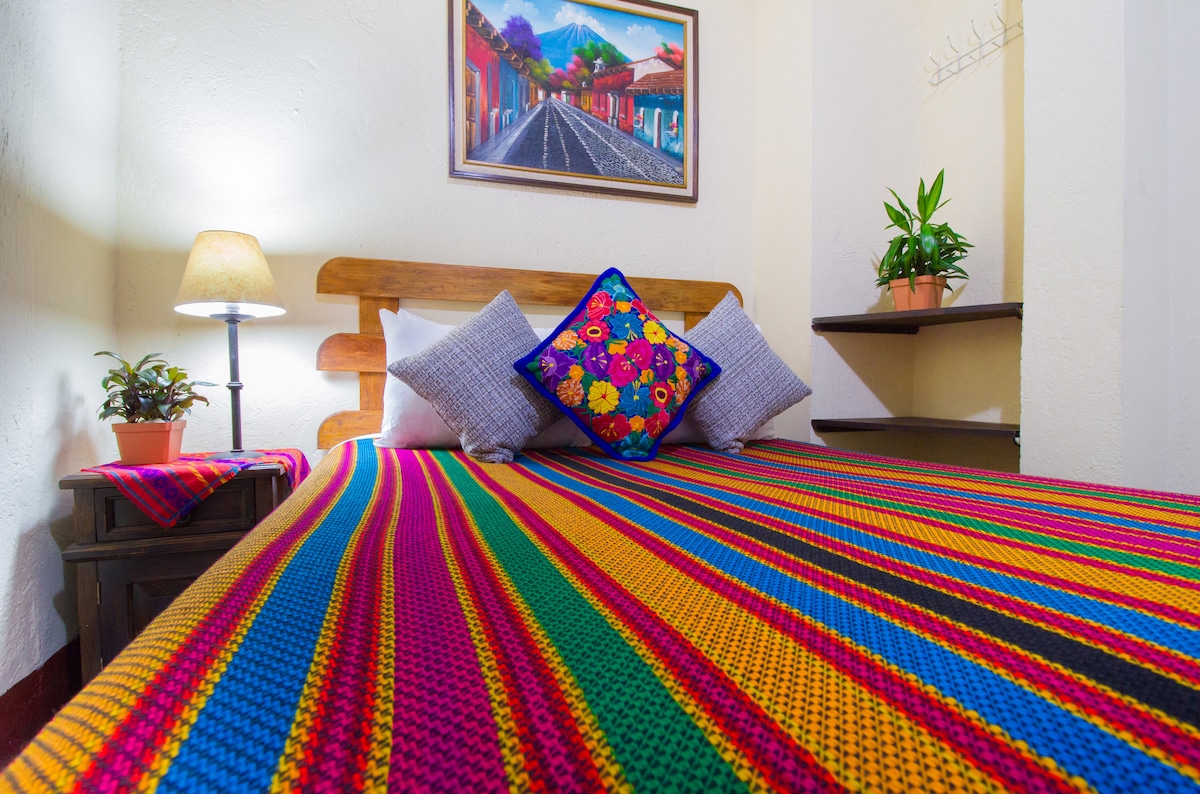 Acogedora y funcional, esta habitación es perfecta para quienes buscan un espacio cómodo y bien ubicado para descansar después de explorar Antigua. Cuenta con una cama queen, baño privado, ventilador, TV con cable, caja de seguridad y amenidades esenciales. Aunque su tamaño es compacto, está cuidadosamente equipada para brindarte una estancia tranquila y sin complicaciones. Ideal para viajeros solos o en pareja que valoran la comodidad, el servicio cercano y el ambiente colonial.