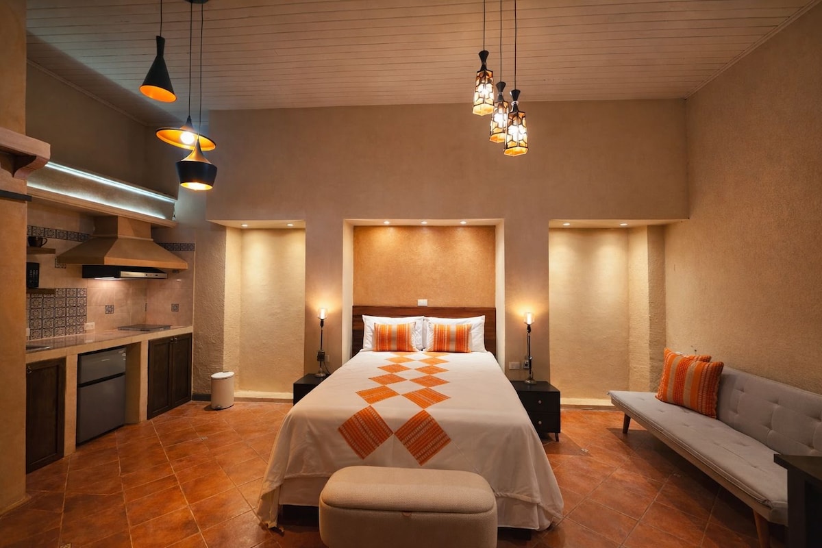 Live the magic of Antigua Guatemala in La Morada de María, an elegant and cozy loft located right in front of Casa Santo Domingo and within the most beautiful cobbled streets of the city. This space combines colonial charm with modern comforts, ideal for couples, small families or groups of up to 4 people looking for comfort and a privileged location.