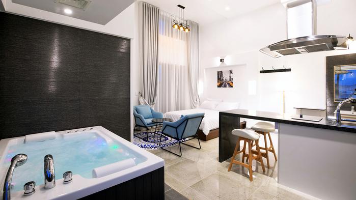 可享受海景和水疗的客房,更经典的 B 座 206 号房(海景、户外独立烧烤)