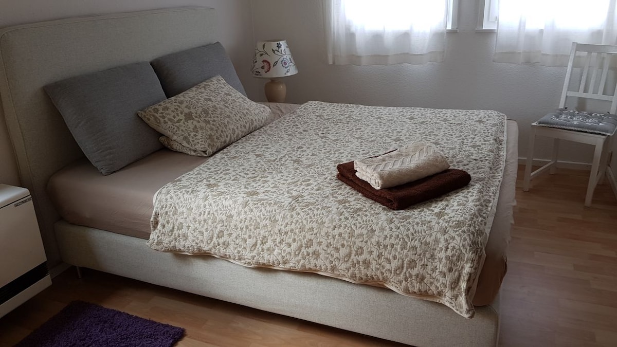 Top Unterkunft, zur alleinigen Nutzung in Einliegerwohnung mit eigenem Zugang(24h). Bad. Küche. TV, Internet. Sämtliche Einkaufsmöglichkeit, Banken, Apotheke in direkter Umgebung. Zentral gelegen ca 1,5 km bis zu Innenstadt. Hervorragende Verkehrsanbindung. Stuttgart Mitte 20 min. Airport 20 min. Bei Bedarf Zustellmatraze für zweite Person. Inklusive: Kaffee, 1 Flasche Wasser. Zucker, Salz, Öl…vorhanden. Frische Bettwäsche alle 20 Tage
