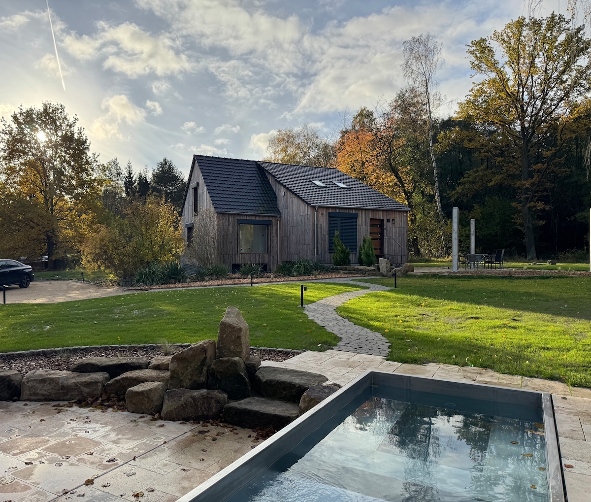 Spacious, stylish and fully equipped house with lots of activities and happiness. Faced to the south, surrounded by a beautiful garden and nature with sandstone rocks. Huge hall with fireplace and bar connected to winter garden offers variable and beautiful spaces - ideal for families, parties, companies. Kitchen equipped for banquets ! Draft Beer ! outside pool, sauna, indoor table tennis, space for children.. Give your mind & body and loved ones what they desire and what they deserve..