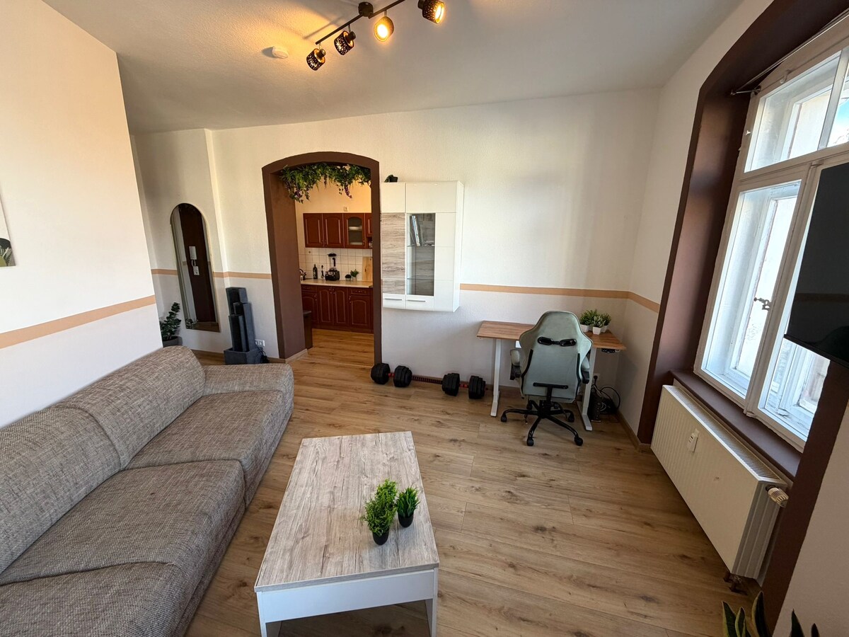 Hallo ! Ich vermiete eine 54m² große Dachgeschosswohnung (2.OG) mit großem Balkon und Blick auf den Lugberg und bei guter Sicht bis in die Sächsische Schweiz. Die Wohnung ist für 2-4 Personen geeignet und komplett ausgestattet. Sie verfügt über 1 Schlafzimmer (Doppelbett) und ein Wohnzimmer mit TV, Sitzecke und einer Schlafcouch (1,40x2m). Die Küche hat einen Herd, Mikrowelle, Sitzecke und beinhaltet alles notwendige zum Kochen oder Backen. Das Bad ist mit WC, WB und einer Dusche ausgestattet.