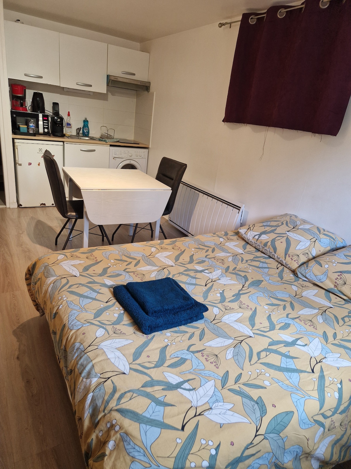 Studio of 25 m² independent, in a house, access to the patio. Within walking distance: city centre (3 min), University of Paris Sud (5 min), RER B (5 min) By bus: Central-Supélec (15 min), Polytechnique (20 min), CEA (25 min) By RER: Massy-Palaiseau (TGV/RER), Paris center (25 min) Bedroom: 2-seater sofa bed, chest of drawers, wardrobe. Possibility of a third bed on a good quality inflatable bed. Kitchen: Small fridge, ceramic hobs, microwave and Senséo coffee maker! Bathroom/WC: hair dryer