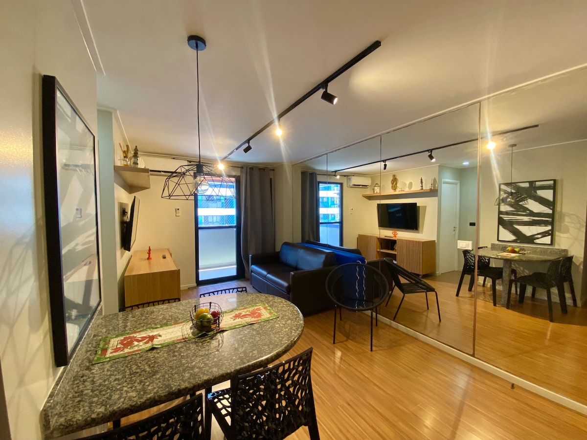 Gostaríamos de apresentar este Loft de 40 m2 muito estiloso, moderno e confortável, de frente ao mar. Ele oferece uma TV de 55 polegadas que gira 360 graus podendo assistir TV também na cama. Conta também com móveis planejados, confortáveis e com designer estiloso, para melhor hospedá-los. Na varanda tem a opção de abrir a janela de vidro, para desfrutar de um café da manhã com essa vista maravilhosa, se assim preferirem. Além de tudo que Maceió tem para Ilhes oferecer.