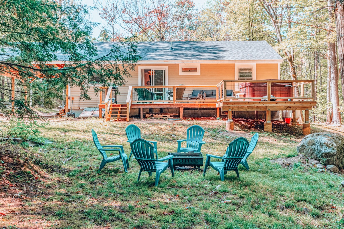 Escape to a peaceful, lakeside retreat with a secluded sun-lit deck and private dock with incredible views of Sunrise Lake, plus a 4-person hot tub, and seasonal amenities like a pedal boat, two kayaks, a SUP board, gas fire table, central A/C, a pellet stove, and snowshoes. Enjoy nearby activities like hiking, leaf peeping, skiing, and visiting scenic towns, local vineyards and breweries — or simply relaxing in a beautiful lakefront setting. The sunsets can be unbelievable!