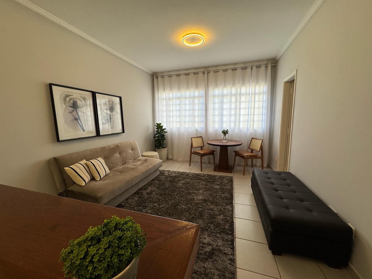 Localizado em bairro seguro e tranquilo, com fácil acesso às principais rodovias para acessar a cidade e comodidades, como academia, supermercados e farmácias. - Quarto com cama de casal, ar condicionado, armários planejados, TV. - Sala com sofá cama, TV, ar condicionado. - Cozinha/lavanderia: armários planejados, fogão, geladeira, filtro anexado à torneira, microondas e utensílios básicos (copos, pratos, talheres e panelas). Obs. Não aceitamos animais de estimação no espaço.