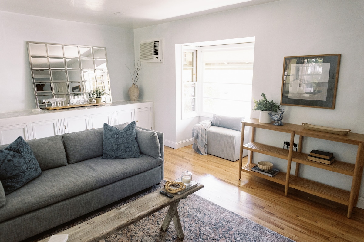Kick back, relax, and immerse yourself in a world of style, comfort, and convenience. This newly renovated cottage has everything you could need and then some. King bed with luxury mattress and bedding plus queen sofa sleeper, fully stocked kitchen and coffee bar, plus washer and dryer. Private yard boasts gas BBQ and outdoor dining. Private, gated driveway fits two cars tandem. Walking distance to cafes, restaurants, and more. Treat yourself to a stay that's truly elevated.