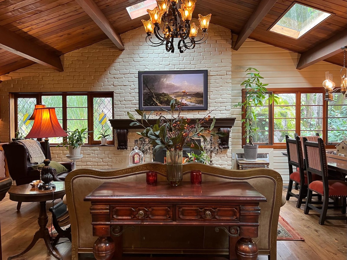 Enjoy this spacious 600 sf Pool-house suite with AMAZING views/sunsets. Have a cold drink & play music on outdoor speakers or BT boom box poolside just steps from your door. Chill under the shade of the wisteria trellis or unbrellas. Kids & dogs will love the very large grassy fenced yard. Cook in a fully stocked kitchen w/air fryer, gas grill, instant pot, etc. Sleep on a 14" miracle foam queen bed. Has a sofa bed or Airbed for 2 more guests. Private patio. 65" TV. Note:LOTS of leaves Oct-Feb