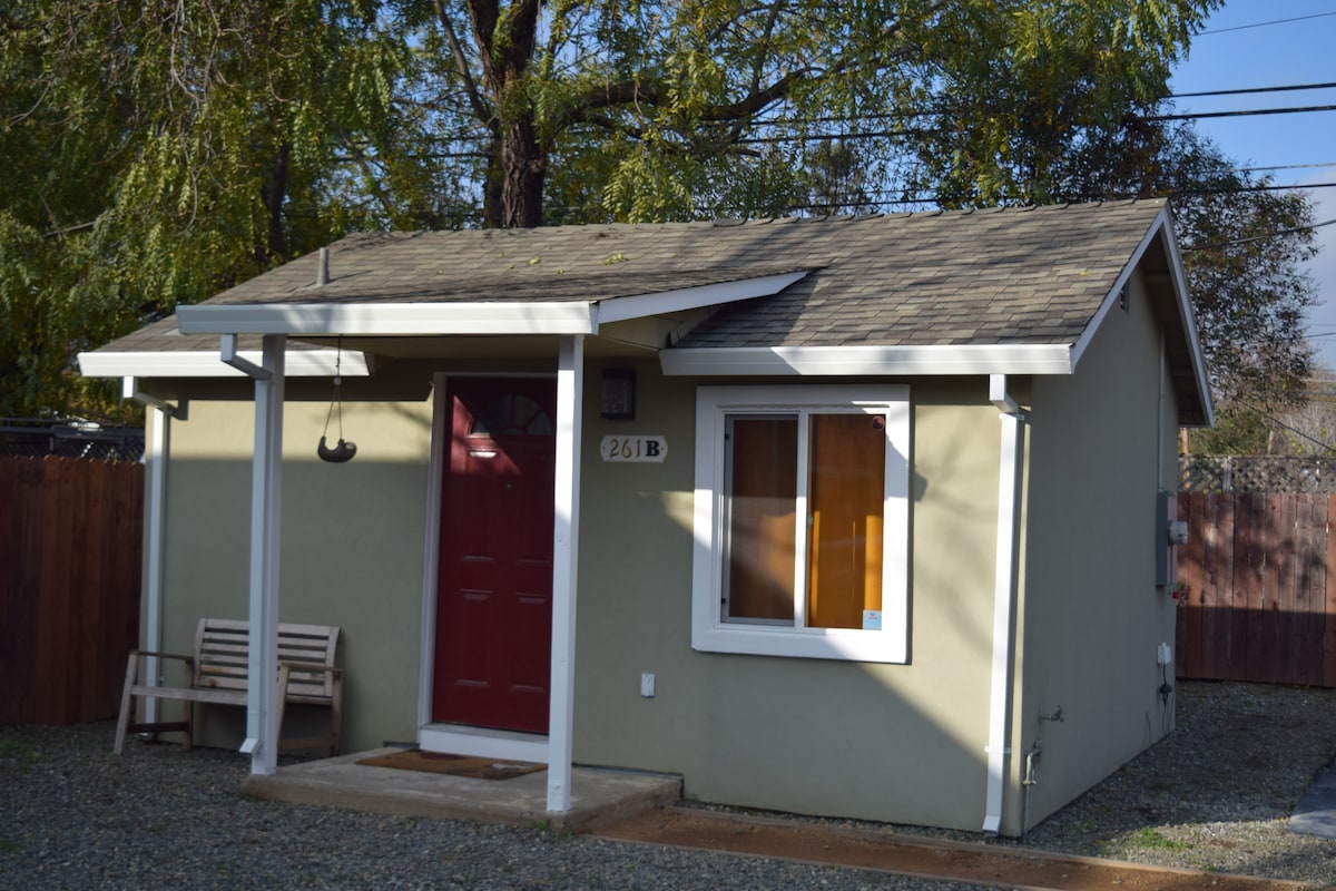 Betty’s Bungalow is a newly constructed (built in 2021) guest house located behind our home. It has its own private entrance which is accessed through the main gate to our back yard and is completely separate from our house. At 370 square feet, it's comparable in size to a 1BR hotel suite. With vaulted ceilings, the space feels large and more open than a standard hotel suite. Easy access to Highway 50 and walking distance to East Sacramento's shops and restaurants.