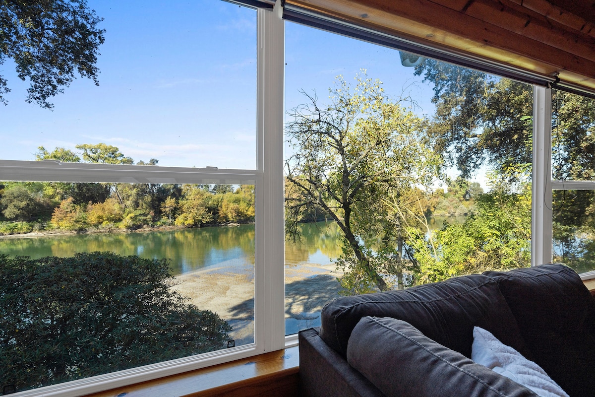 No chore list! Quiet 4 bedroom/3 bath home on the American River bluff above the San Juan Rapids. Breathtaking river views from the backyard, all 3 upstairs bedrooms, family rm, kitchen & both dining rooms. With private lawn, deck, bbq and expansive gardens. Laundry and well-equipped chef's kitchen, flatscreen TVs with Roku in living rm and all 4 bedrooms. 20 min to downtown Sac, Sac airport and 1.5 hrs to Lake Tahoe. Walking distance from Bannister Park’s river access and scenic bike trails.