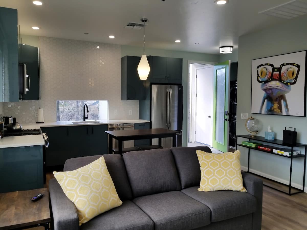 Private updated 800 Sq ft private guest house on large estate with great room, fully equipped kitchen, washer/dryer, bedroom, free EV charging station, pool and always heated spa. Pool and Spa are exclusive to guests and not shared during your stay. The property is located in desired Fab Forties neighborhood. Walking distance to coffee shops, restaurants, microbreweries, bars, parks and minutes from downtown. If you prefer riding a Jump bike or Uber to get around, there are plenty nearby.
