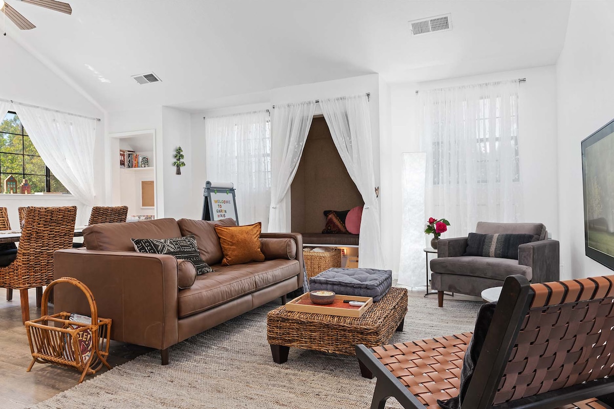 Enjoy a unique experience at this stylish, design forward home away from home in lovely Curtis Park, The space was curated specifically to feel like a relaxing sanctuary which I hope you will enjoy as much as I do. Yard in progress with Bocce ball court, cornhole, hammock and table and chairs available or spend time lounging on your own private deck. Close to downtown and midtown, this chic new space was inspired by travels to Europe and New York City