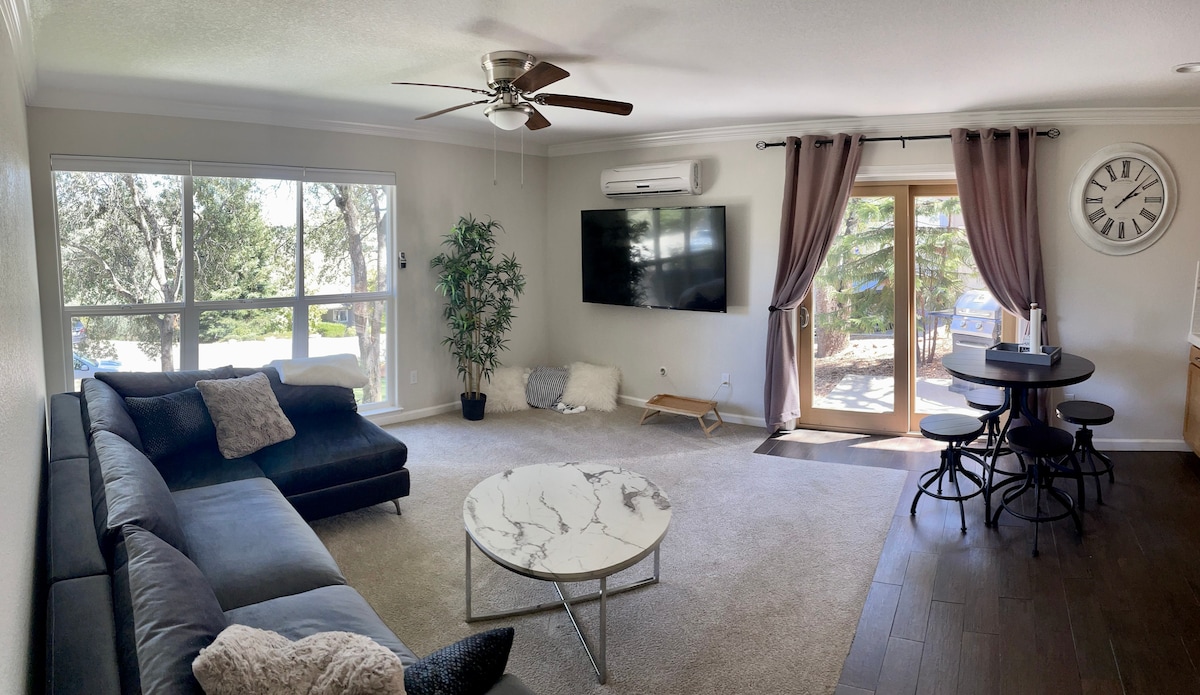 Welcome to Hammond House. Large comfortable and private living space isolated from the rest of the house. Private bedroom, private full bathroom, and a very large private living room with a queen sized sofa bed. Includes access to large solar heated pool, patios, gardens, and koi pond. Upscale restaurants in Milagro Center just 1 mile away. Walking distance to Ansel-Hoffman Golf Course, Effie Yeaw Nature Center and American River nature trails. See “interaction with guests” for Covid info.