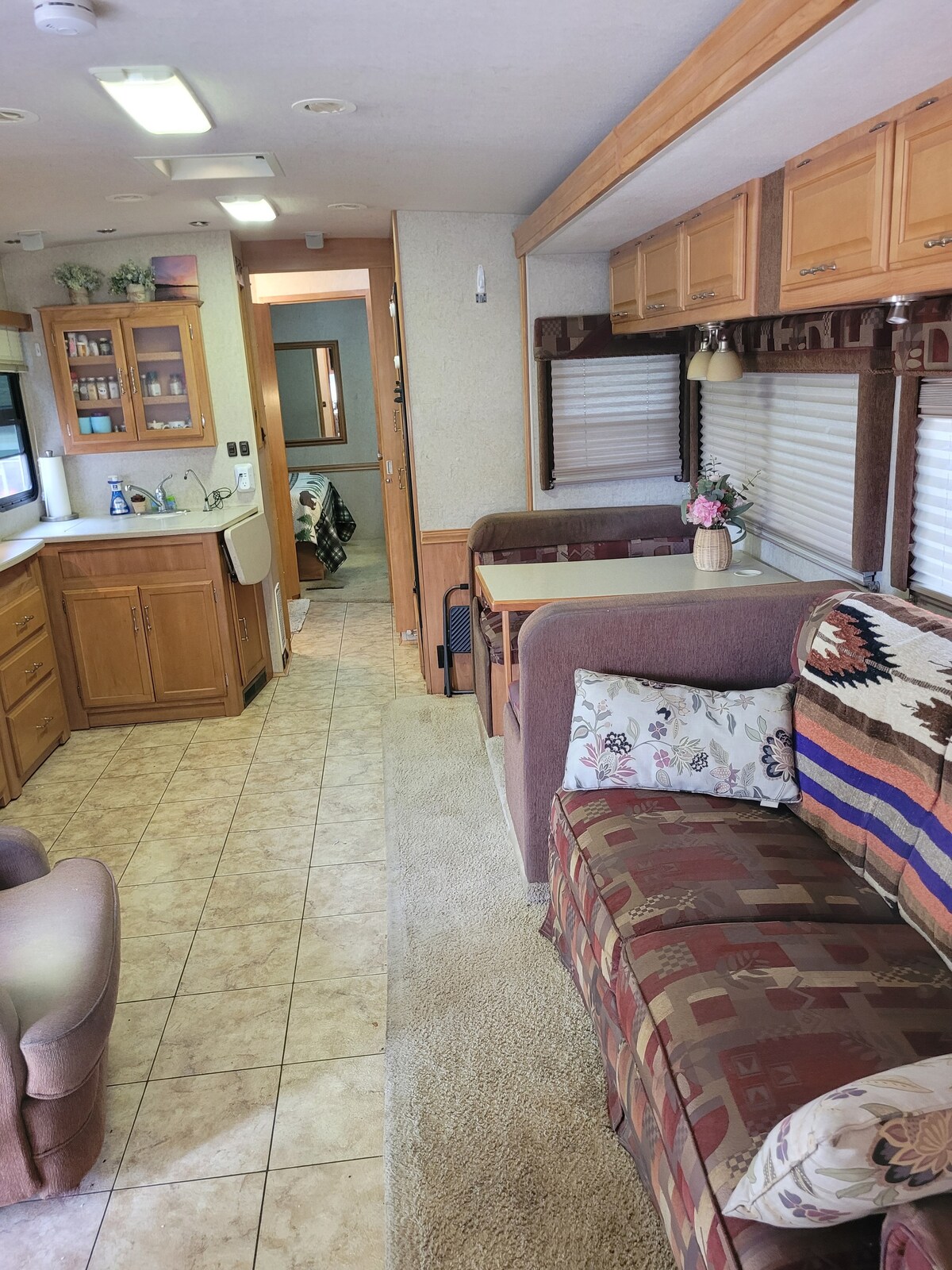 This memorable place is anything but ordinary. We have you covered in our nearly new 2021, 28', travel trailer. This beautiful RV features, a separate master suite w/a queen bed, 2 nightstands & a wardrobe on each side. Theres a full size booth table that seats 4, comfortably. There are 2 full size bunk beds & sofa opens to a comfy little spot for 2, to watch TV. There’s a DVD player and movies for use. Full kitchenette (dual hot plate) & fridge, microwave & pantry. Coffee press available.