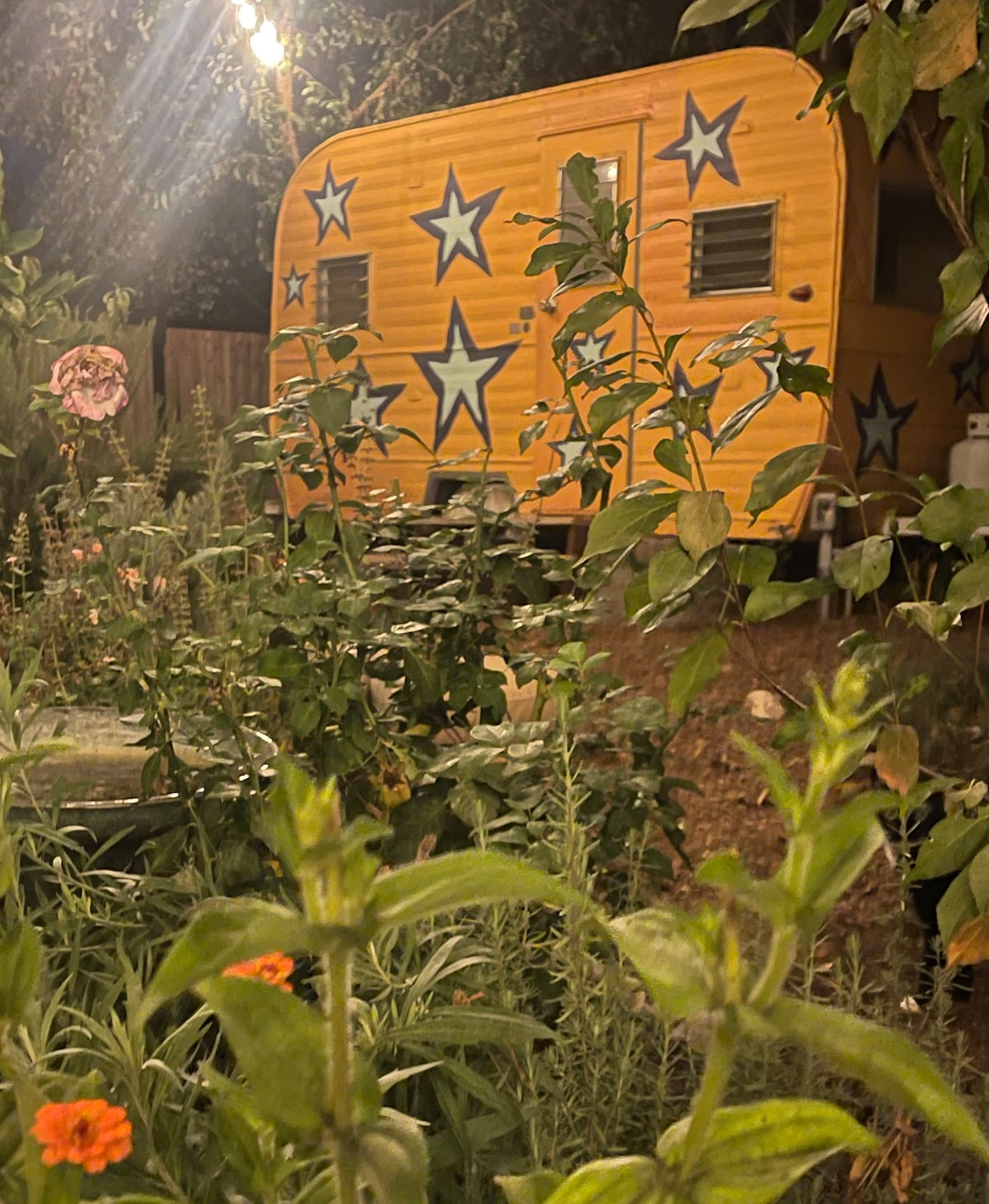 Experience rustic glamping in this vintage 1968 Aloha trailer within walking distance to UCD, downtown, community park, Farmers' Market, food co-op and greenbelt. Enjoy the 20+ fruit trees and 5 cats of this suburban wilderness in youth-hostel-vibe shared realms, including hot tub, fire pit, bbq, outdoor dining, treehouse, + hammocks. Or rest in private hermitude, preparing meals in your mini-kitchen, surrounded by peaceful garden. Outdoor bathroom with HOT shower steps away. Bikes available.