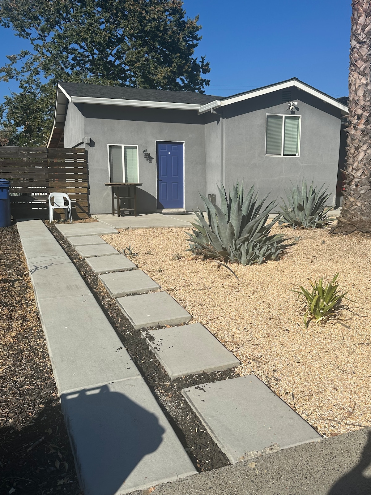 Guest suite attached to the main house with separate entrance. French doors opening up to large patio. Well lit entrance and living space. Kitchenette includes fridge, electric portable induction cooktop, microwave, pans, cutlery, and tableware. Whole house water filtration system. Large bathroom with walk-in shower. Air mattress if needed for extra guests. Large contained back yard good for dogs. Ten min. to State Capital, CSUS, and five min. to UC Davis Medical Center.