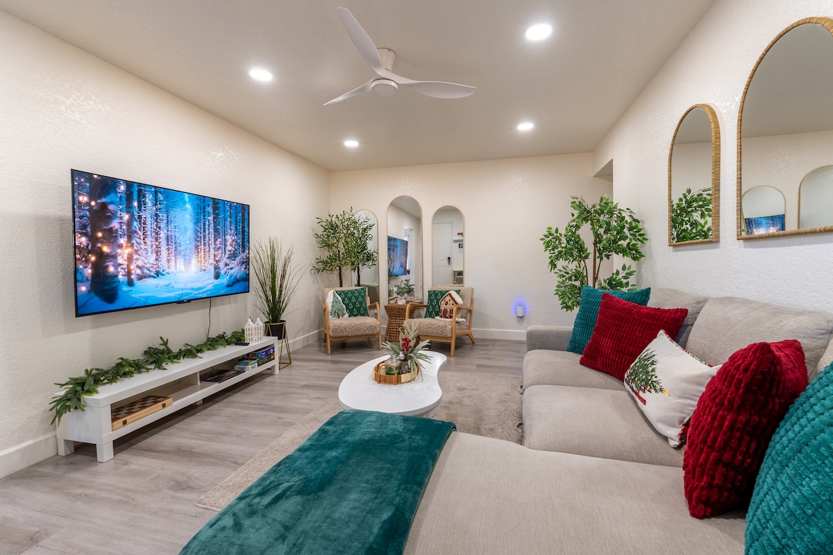 Hendricks House is an aesthetic masterpiece in the heart of East Sacramento. Tree-lined streets and beautiful architecture make for delightful walks to cafes and coffee shops. Our home was built in 2020 and offers the best of old world design with all the modern amenities. Close to three regional hospitals, CSUS and the state Capitol. Two bedrooms, a fully stocked kitchen, washer/dryer, gas fireplace and on-site parking make it perfect for a family, a romantic getaway or business trip. Max=4