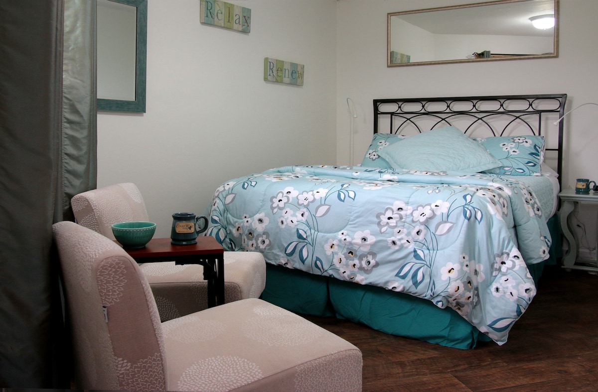Contemporary farmhouse chic - the Rhino Room is an airy and bright getaway. Enjoy your own private bedroom with private entryway and parking as well as a quaint ensuite bathroom.Self- check in. We maintain clean and sterilized environments for our guests, using current industry standards for sterilizing hard surfaces, appliances and guest areas. We are a licensed short term rental. Ask about our other Napa listings if the dates here are booked.