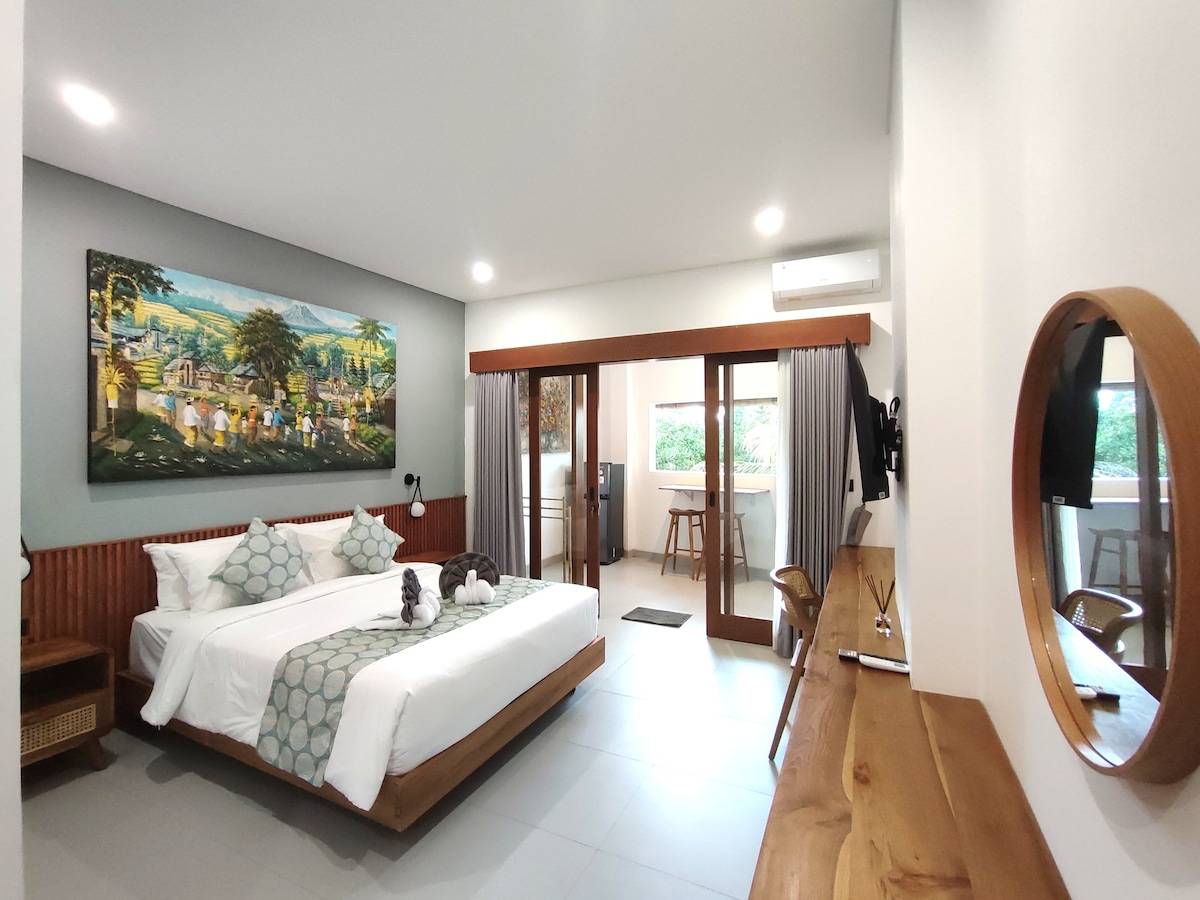 绿色Biu宽敞单间公寓,带阳台,位于乌布中心