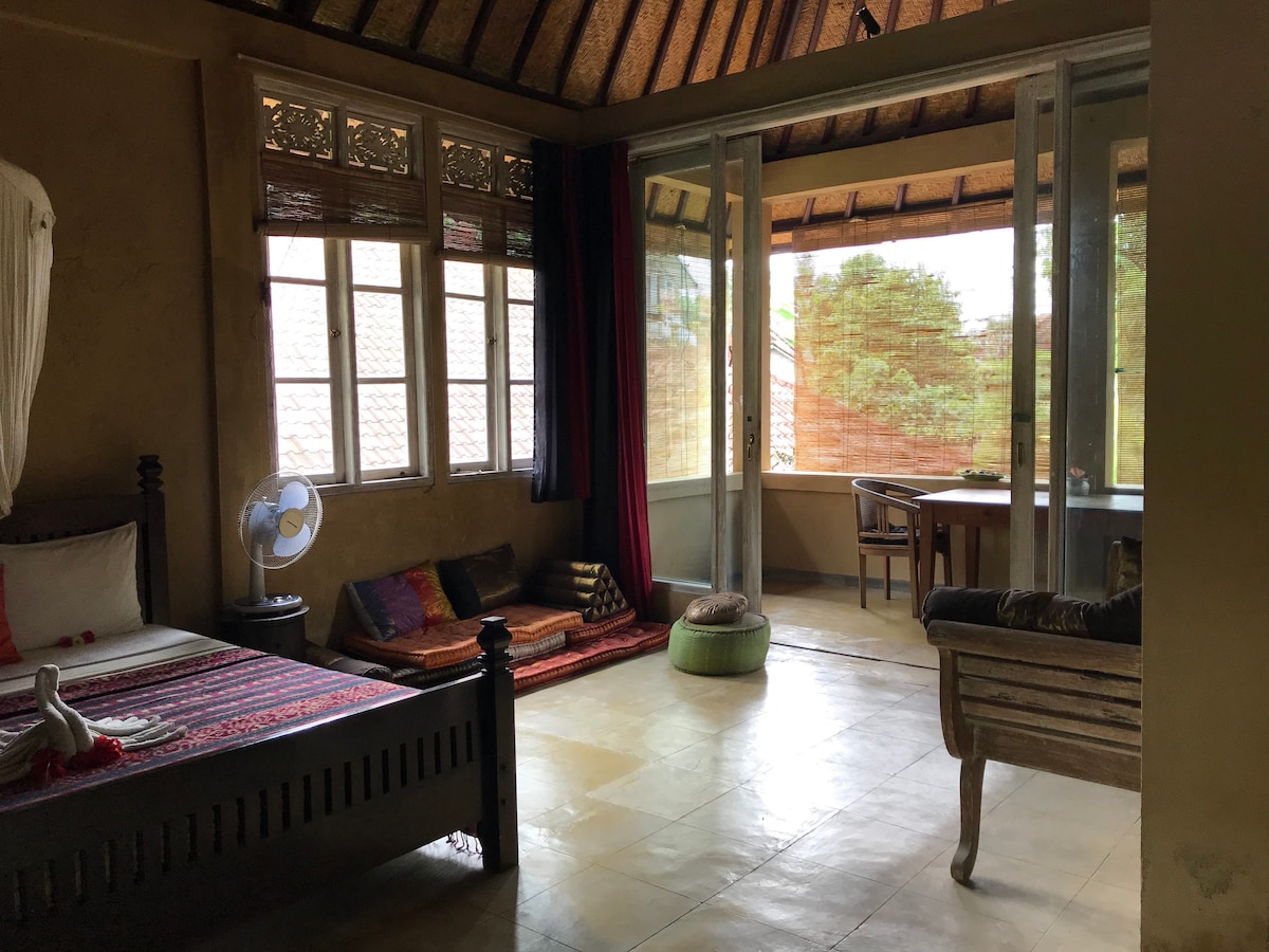 Hidden retreat in the heart of Ubud. Larger than most one-bedroom villas, with private terrace and courtyard garden, fast fibre-optic WiFi, designated work area, and space for yoga practice. Perfect for couples or solo travellers seeking a private, peaceful and secure base near yoga studios, cafes and Ubud's vibrant centre. Walk everywhere!