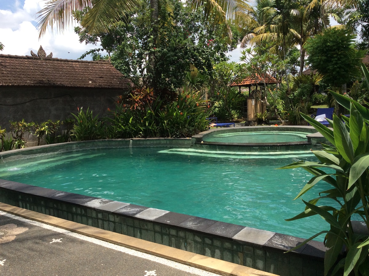 Tempat yang sangat tenang dan damai Priivate pool yang sangat sejuk dan menarik pemandangan sekitar adalah sawah luas yang hijau kami menyediakan parkir yang luas lokasi kami hanya 7 menit ke pusat kota ubud dengan sepeda motor, 3 menit menuju Ubud fitnes center, 1 menit menuju laundry, 5 menit menuju supermarket Disebelah kami ada restoran 5 menit menuju restorant lainya Sangat Bisa akses motor dan mobil jadi sangat memudahkan anda jika menginap di tempat