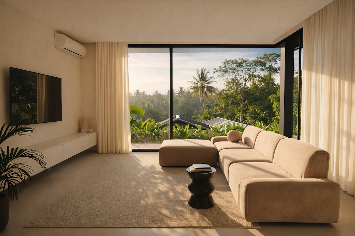 Be Tarzan and escape to our two-bedroom, two-bath treehouse, suspended above Ubud’s lush jungle valley. Arrive via a private elevated bridge into a light-filled sanctuary with soaring ceilings, skylights, glass walkways, a dedicated study, and effortless indoor–outdoor living. Unwind in your private glass-edge pool, take in deep panoramic valley views stretching toward the volcano on clear mornings, and enjoy complete privacy, with no crowds, no construction — just nature, comfort, and peace.