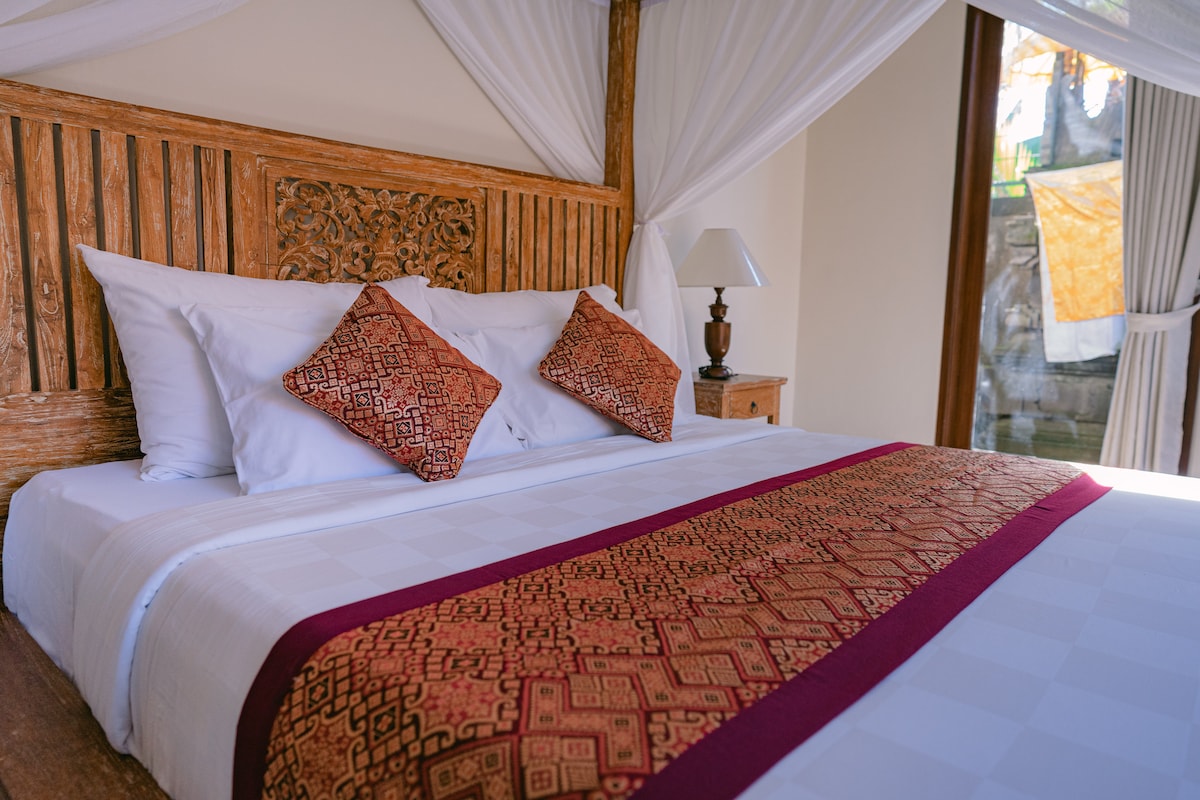 Our spacious and comfortable rooms have a queen-sized bed and provide hot and cold shower,wifi access and ceiling fan. Breakfast is included. We are located just 700m away from Monkey Forest and a 10 minute walk away from Ubud center. Im also provide taxi service for pick up,drop off,day trips around Ubud: Rice terrace Holy water temple Coffee plantation Waterfall Elephant cave temple Sunrise trekking Water rafting Cycling tour Cooking class Etc Please asking me for more information:)