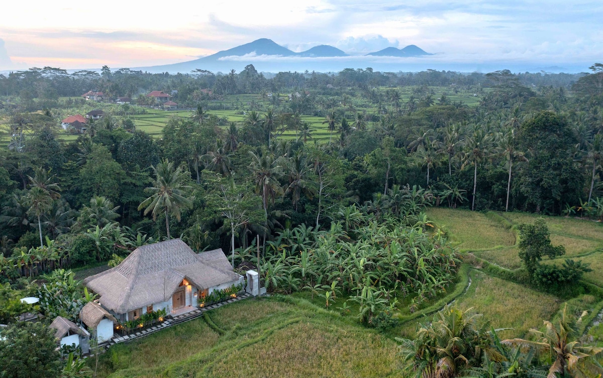 WHOLE PRIVATE HOUSE, with private pool, 2 serene and spacious suites, surrounded by lush green rice fields and jungle view. Only 3 minutes from the center of Ubud but feels like kilometers away. A world away from the hustle and bustle of everyday life. PLEASE BE AWARE: It can be reached by a 15 minutes walk or a 3 minutes motorcycle ride from the heart of Ubud (THE LAST PART OF THE PATH IS ONLY ACCESSIBLE BY FOOT OR MOTORCYCLE).