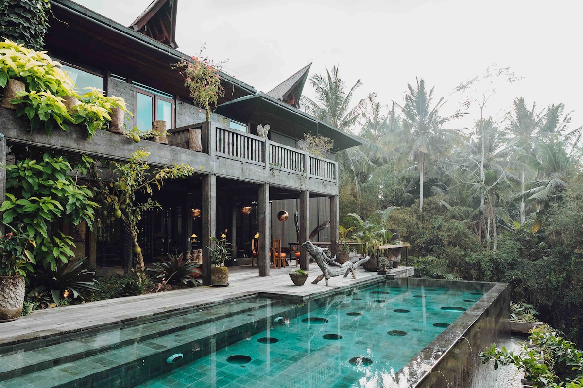 Welcome to Alpha House Bali, your serene getaway in Bali. Designed by Alexis Dornier and beautifully decorated with Indonesian and modern art, the villa sits amongst palms and rice fields in a quiet part of Ubud. Enjoy the breathtaking roof structure, natural stone infinity pool, carefully selected and locally produced teak furniture, and the unique en suite bathroom mirror design. Alpha House is luxurious, artsy and comfortable at the same time and always feels like a home away from home.