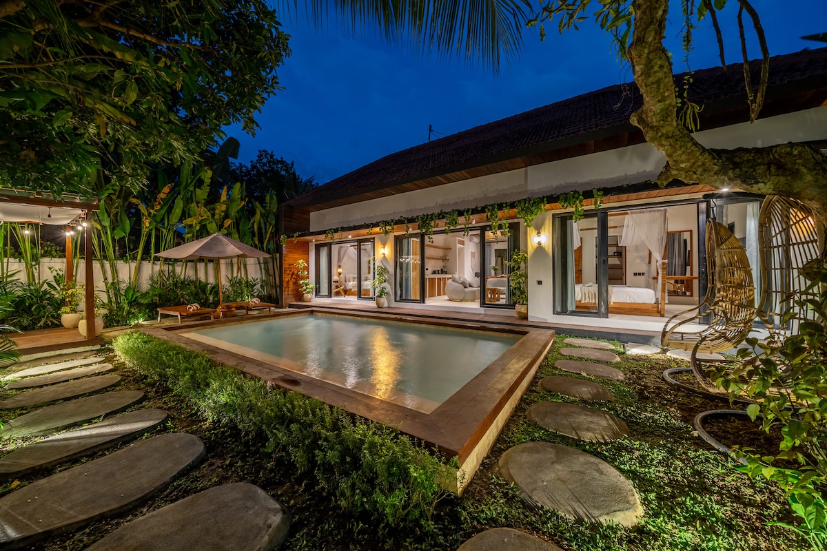 La Casita is a dreamy one-bedroom villa in lush Sayan, Ubud, perfect for couples seeking romance & serenity. Wake to golden sunrises through the sunrise window with electric curtains, sip morning coffee on your private terrace, & unwind in the embrace of your secluded plunge pool. With curated interiors & elegant touches throughout, it’s a haven of intimacy and style - designed for love & unforgettable moments in Bali. For your peace of mind, the villa is fully licensed and registered (NIB).