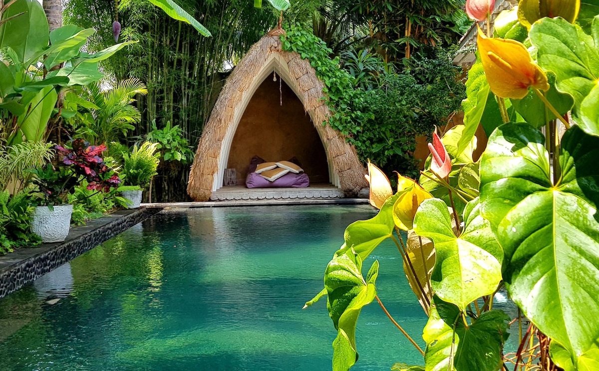 Let your cares slip away in the comfortable pavilion overlooking your private salt-water pool and stunning garden. Rinse off under the rain shower in the large open-air garden bathroom, then relax in the garden pavilion, taking in rice field and tropical garden views. Villa Via is luxurious and private, featuring a spacious bedroom with a king-size 4-poster bed, ensuite dressing room, and bathroom. The living area overlooks the fabulous garden and pool for ultimate relaxation.
