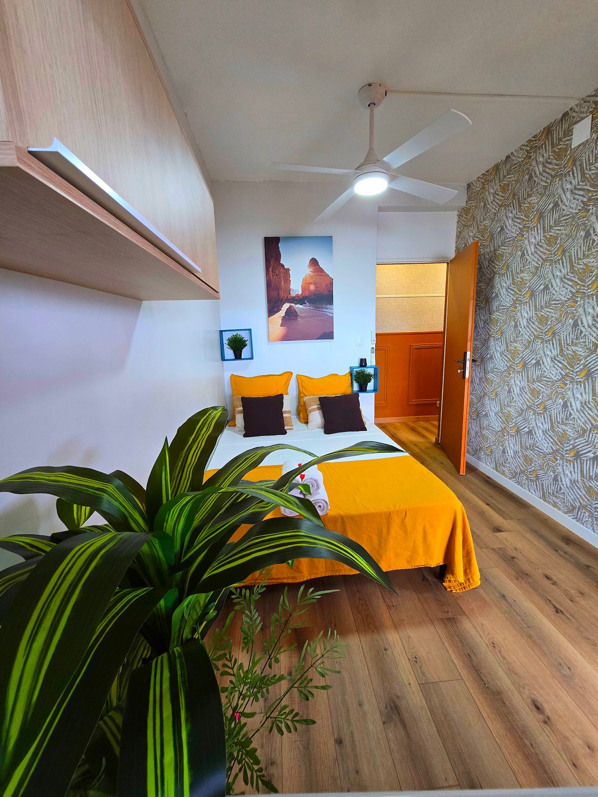 Magnifique T2 équipé d'une belle cuisine. La chambre est spacieuse et confortable. La salle d'eau n'a rien à envier aux hôtels 5 étoiles. Le coin salon est agréable et vous offre une belle vue sur la mer. Le centre commercial Baobab se trouve à 4 minutes à pied, vous avez également bar, restaurant et pharmacie à proximité.
