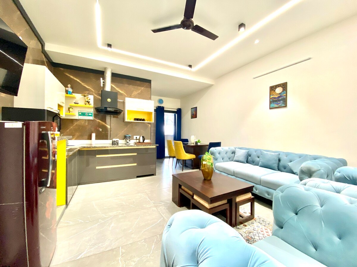 Cozy Stay for those who want to spoil themselves in comfort.Full of life and joy apartment with bright color theme that will bring Positivity in your relaxing days. Amenities- fully functional kitchen,microwave,Fridge,UHD TV,Chimney,Bread toaster,Induction with high capacityAll the crockery you need is at the tip. 24hrs supply of drinking water.