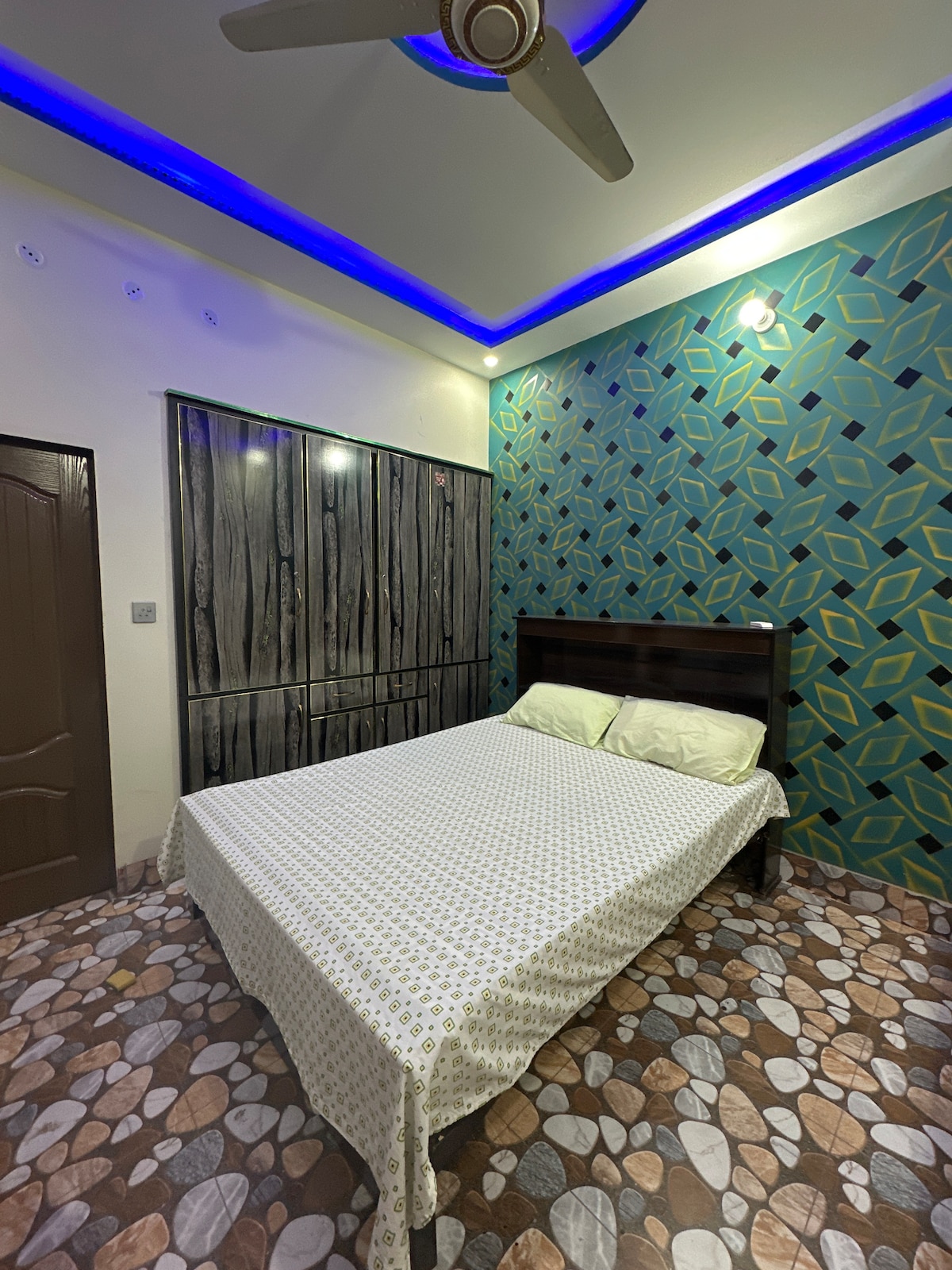 Forget your worries in this spacious and serene space. 1. Central location 5minutes from Multan cantt 3 minutes from Multan Industrial estate. 2. Family friendly only no couples and stags allowed. 3. Free parking safe and secure 4. Within a gated society Multan Golf City 5. Only one room can be booked too. 6. small room 3k per day big room 5k per day 7. Free wifi 8. Extra matresses available 9. o34o2734346
