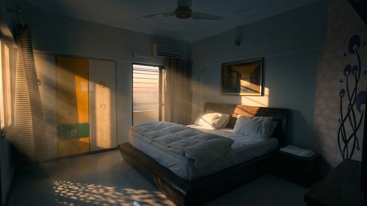 🛏️ Premium 3-bed apartment + 3 bathrooms 🎨 Cozy, stylish interiors with plush beds for deep, happy sleep 💤 🛋️ Stylish TV lounge with recliner seating — Netflix and Chill 🍿 👩👩👧👦 Kid-friendly & family comfortable, yet ideal for 👤 solo or 💼 business travelers 🍳 Fully equipped kitchen, ⚡fast Wi-Fi, ❄️ heat & cool ACs 🌿 2 balconies for fresh air 🌊 8 mins to Sea View, 🛍️ 12 mins to Dolmen Mall Clifton 📍 2nd floor, DHA Phase VI, Kh-e-Bukhari — prime location, stress-free stay✨
