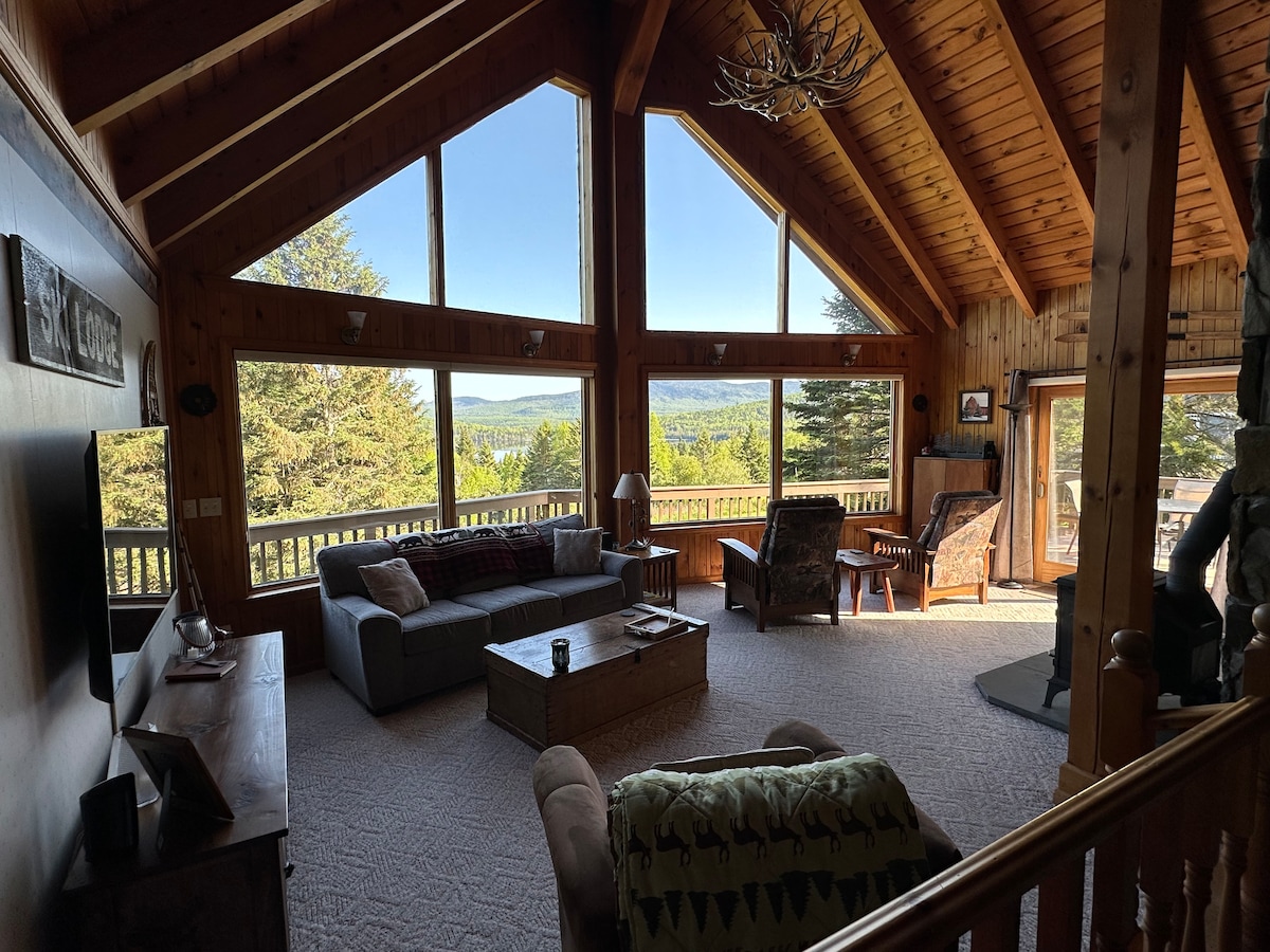 Welcome to Out of Dodge in Rangeley Maine! A well Appointed Chalet with Panoramic mountain and water views. located just 15 minutes from Saddleback Ski Resort and only 5 minutes to Snowmobile and ATV trail access. Whether you’re coming for outdoor recreation or just to unwind and soak in the scenery, the view here is breathtaking in all seasons (especially fall!!) Family-friendly, High Speed Wi-Fi, 55" HDTV with surround sound and YouTube TV!