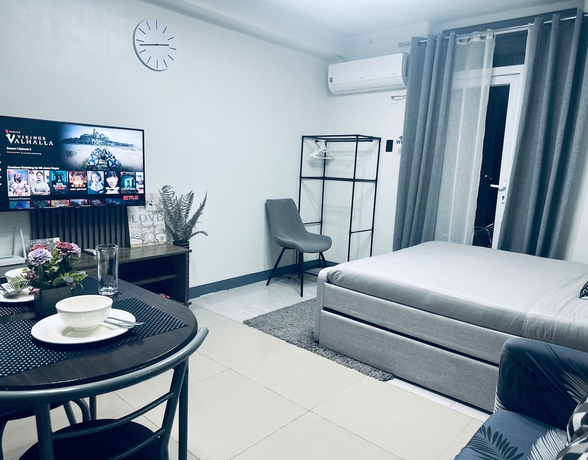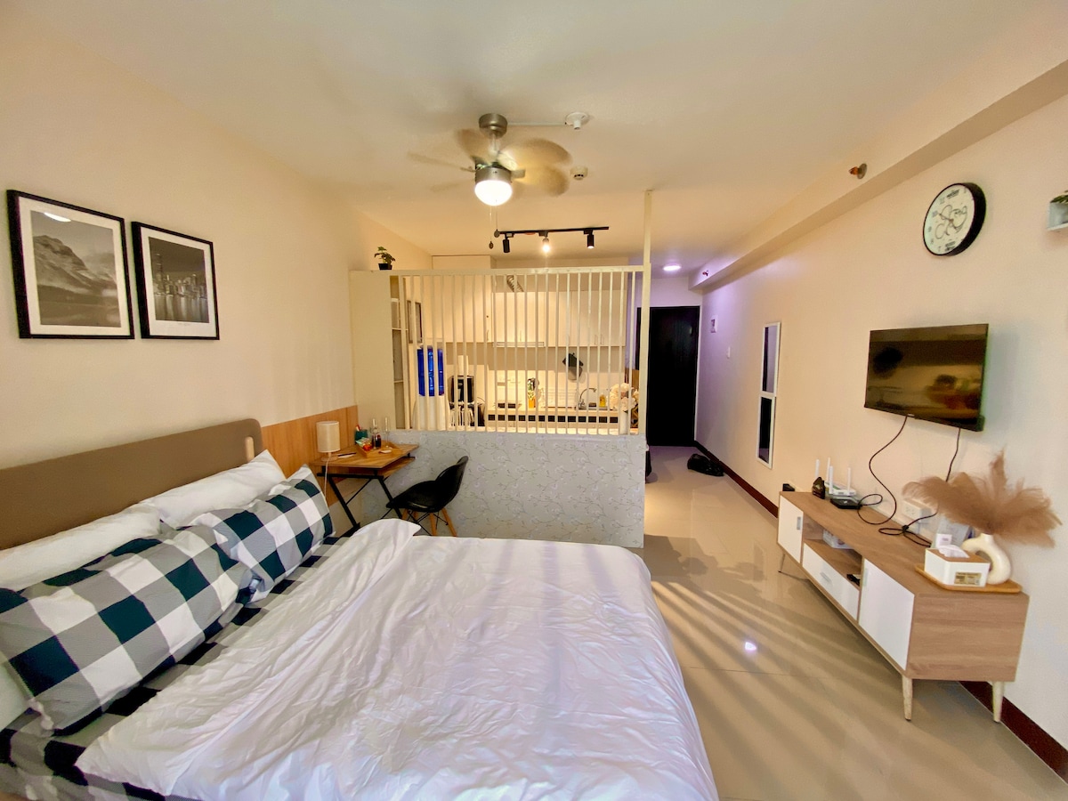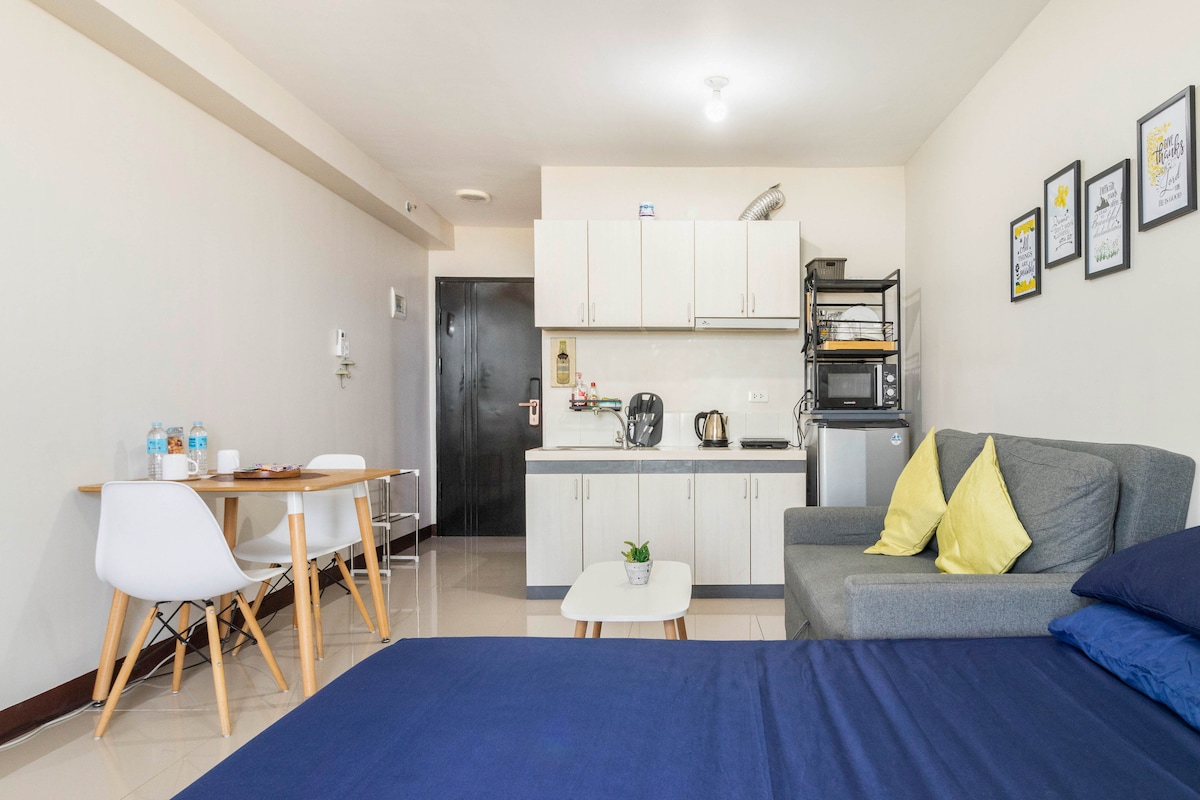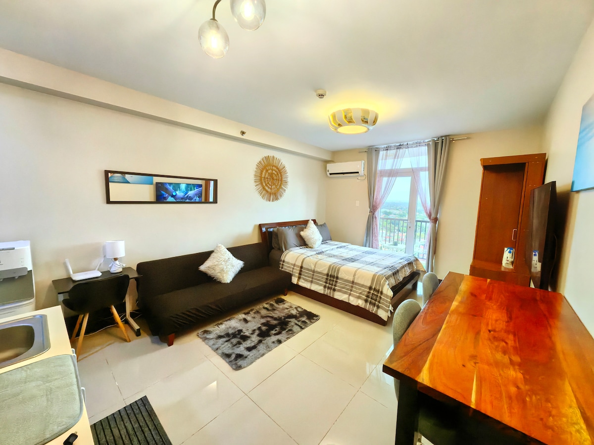 A cozy & thoughtfully furnished studio condo near Cebu’s major commercial & business hubs - IT Park & Ayala Center! So whether you’re visiting Cebu for business or leisure, you’re sure to be accessible & within reach to your destinations. Feel right at home and be greeted with the wonderful views of the sunrise, the hills and fairways. And with Fiber internet, always stay connected wether for work or Netflix. We’d love for you to experience Cebu and to feel right just at home.
