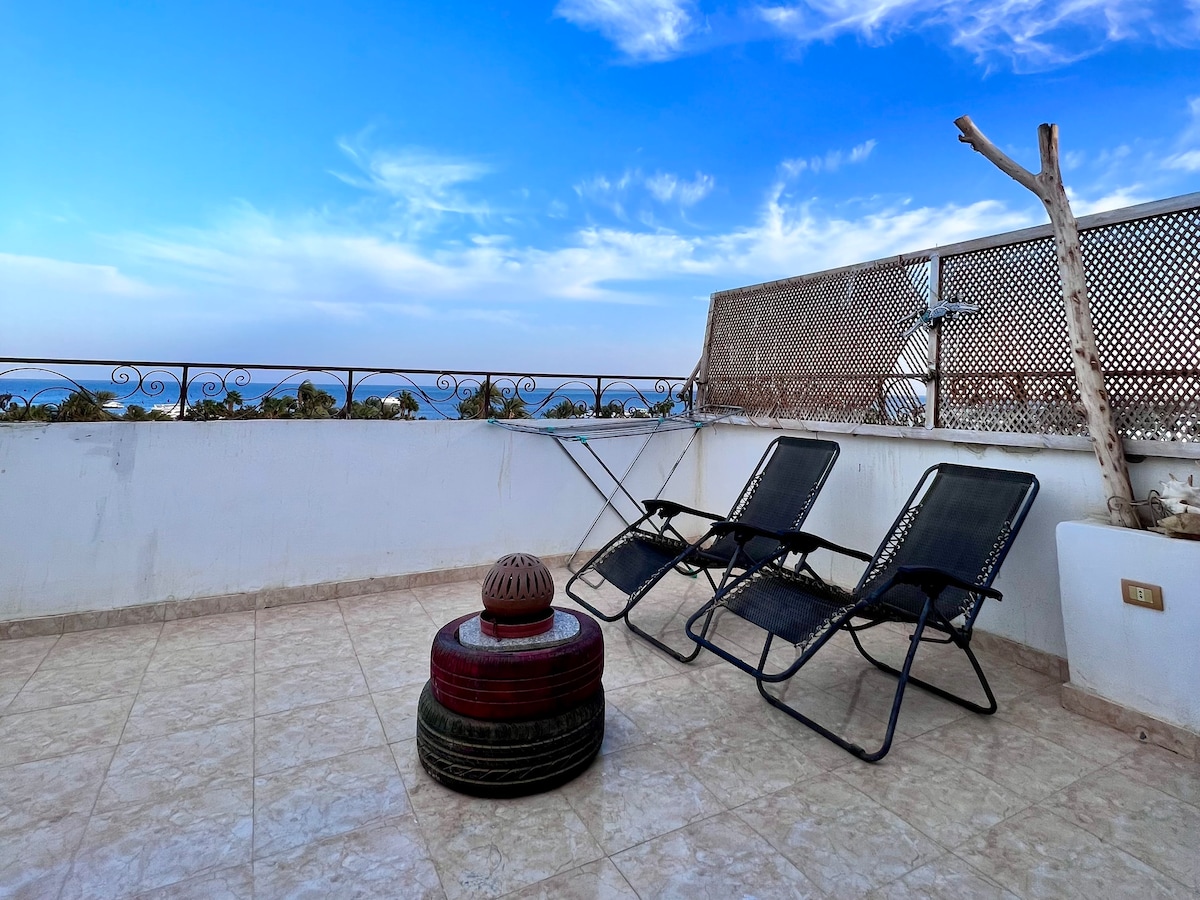 Enjoy an amazing Red Sea view from your one-bedroom rooftop apartment with an equipped kitchen, dining area, and private terrace for sunrises. You will have complete privacy to use the apartment including a private terrace with sea view. The only shared area is the stairs. You can come and go from the building whenever you like